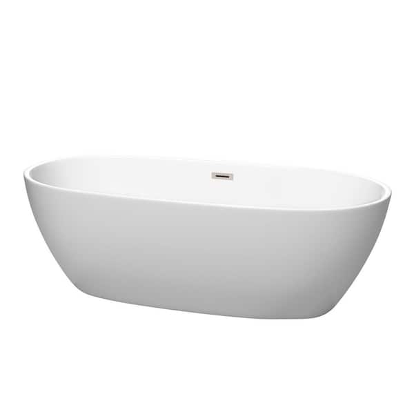Questions and Answers for Wyndham Collection Juno 71 in. Acrylic Flatbottom Bathtub in Matte White with Brushed Nickel Trim