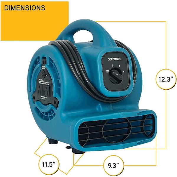 Be the first to ask a question for XPOWER 600 CFM 3-Speed Multi-Purpose Mini Mighty Air Mover Utility Blower Fan with Power Outlets