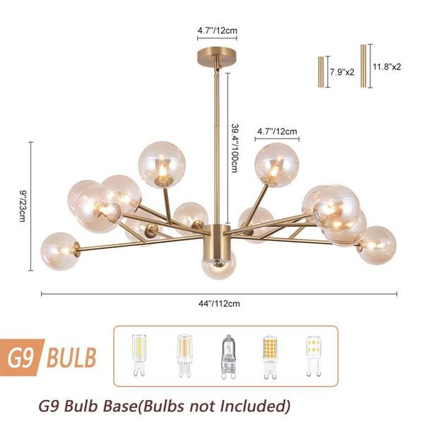Be the first to ask a question for Y'INSP 15-Light Metal Gold Bronze Stupnik Modern Linear Chandelier with Amber Glass Globle Shades
