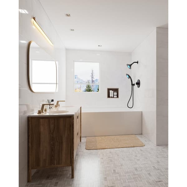 Be the first to ask a question for YAWWALK 2-Spray 5 in. LED 3-Color Dual Shower Head Wall Mount Handheld Shower Head in Matte Black (Valve Included)