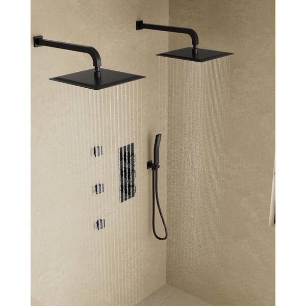 Questions and Answers for YAWWALK Thermostatic Valve 8-Spray 12 in. and 12 in. Wall Mount Dual Shower Head and Handheld Shower in Matte Black