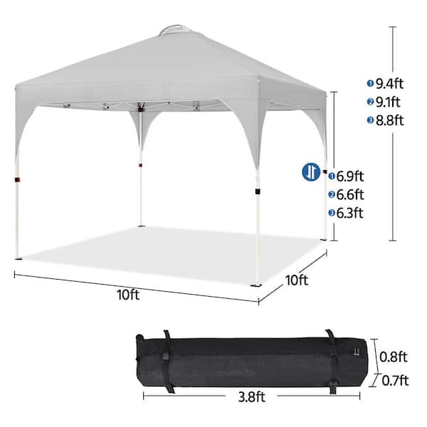Questions and Answers for Yaheetech 10 ft. x 10 ft. Outdoor Pop-Up Canopy Camping Tent for Garden Patio Park Market Light Gray
