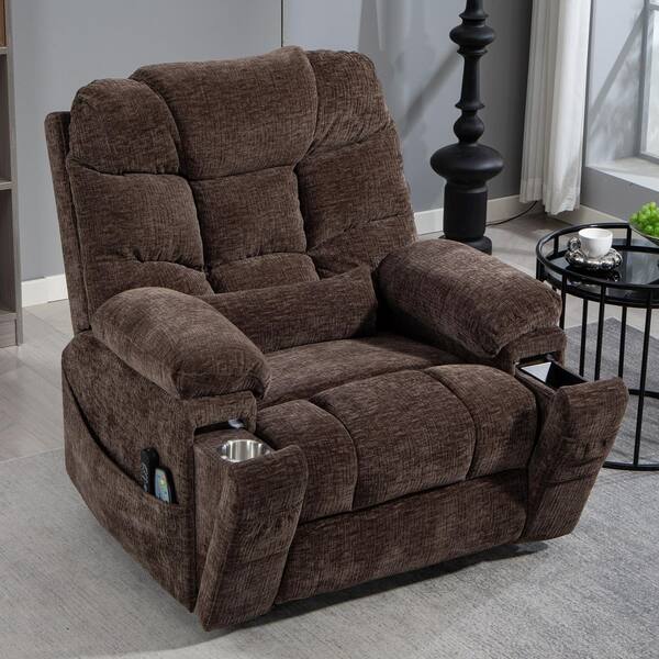 Be the first to ask a question for aisword Functional Oversized Comfort Chenille Power Lift Recliner with Wireless Charging, Cup Holder, Massage and Heating-Brown