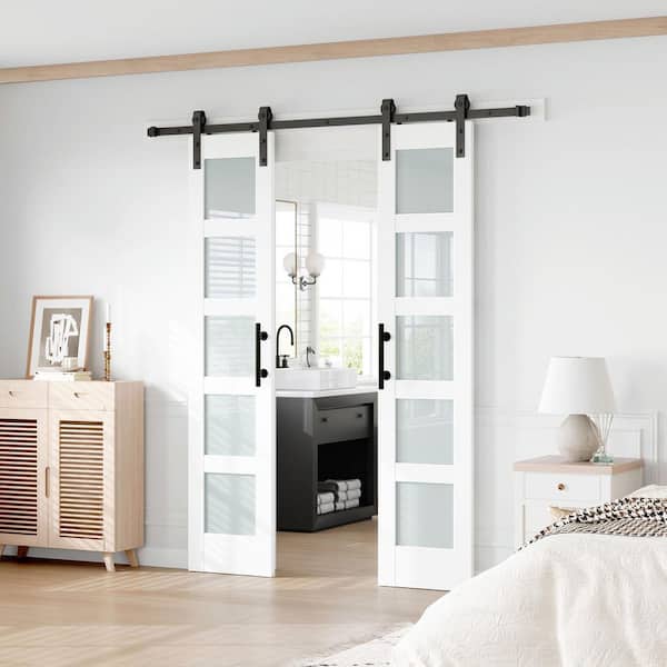 Questions and Answers for easelife 36 in. x 84 in. (Double 18 in. Doors) 5 Lite Frosted Glass White Finished MDF Sliding Barn Door with Hardware Kit