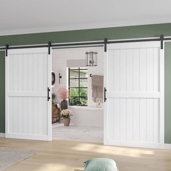 Questions and Answers for easelife 96 in. x 84 in. (Double 48 in doors) White Paneled H Shape Solid MDF Sliding Barn Door with Hardware Kit