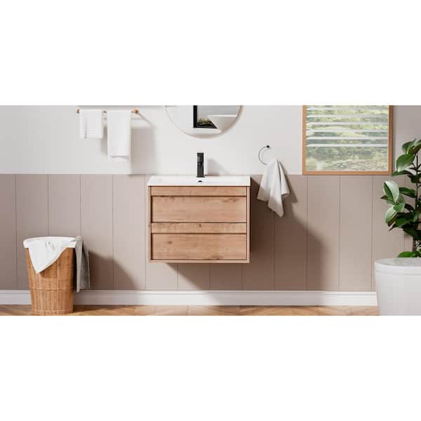 Be the first to ask a question for eclife 24 in. W x 18.1 in. D x 18.1 in. H Single Sink Bath Vanity in Oak with White Ceramic Top and Drain Faucet Set