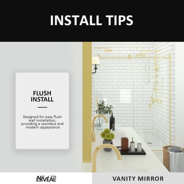 Questions and Answers for niveal 42 in. W x 36 in. H Rectangular Framed Wall Bathroom Vanity Mirror in Brass