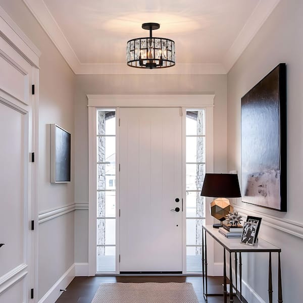 Questions and Answers for pasentel 12 in. 3-Light Round Modern Black Drum Semi Flush Mount Ceiling Light with Clear Crystal Glass