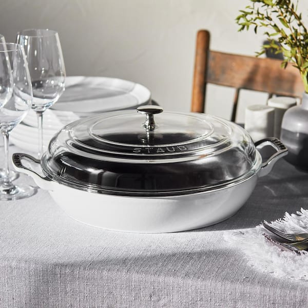 Be the first to ask a question for staub Cast Iron 3. 5 qt. Braiser with Glass Lid - White