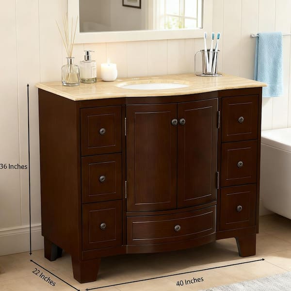 Be the first to ask a question for stufurhome Grand Cheswick 40 in. Vanity in Dark Cherry with Marble Vanity Top in Travertine with White Undermount Sink