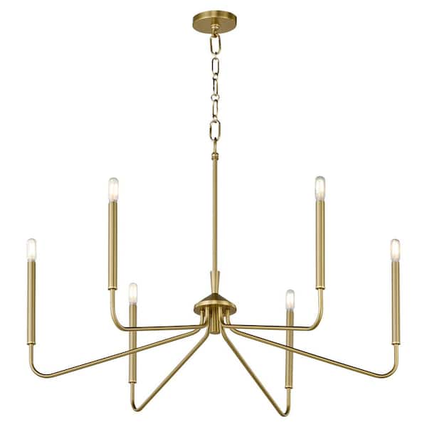 Providence 60-Watts 6 Light Aged Brass Chandelier Light with no Shade, Light Bulb not included
