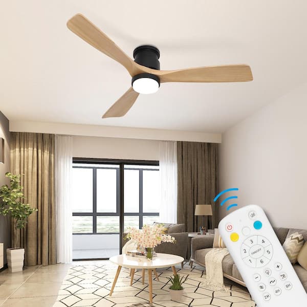 4.33 ft. Modern Indoor Wood Low Profile Flush Mount Ceiling Fan Light with Light Integrated LED Remote Included