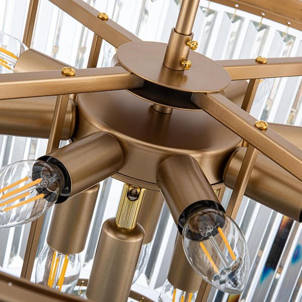 Modern 12-Light Gold Clear Unique Tiered Chandelier with Crystal Accents, Bulbs Not Included