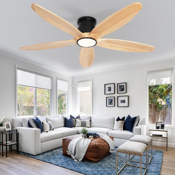 Raccroc 52in. Dimmable LED Indoor/Outdoor Wood Smart Ceiling Fan with Light and 6-Speed Remote