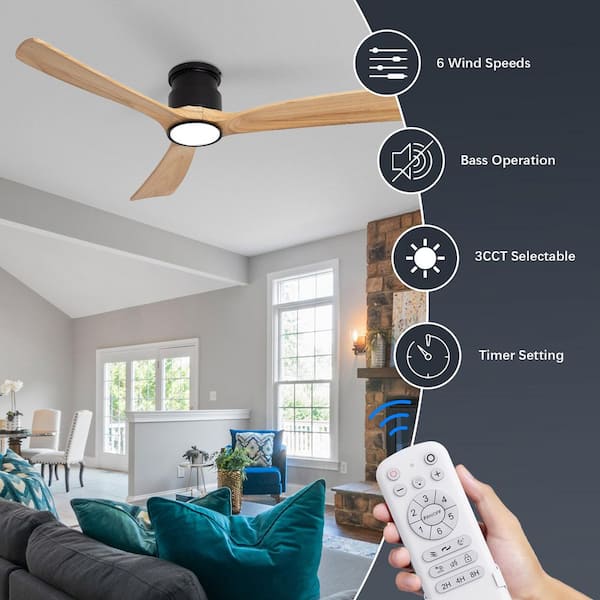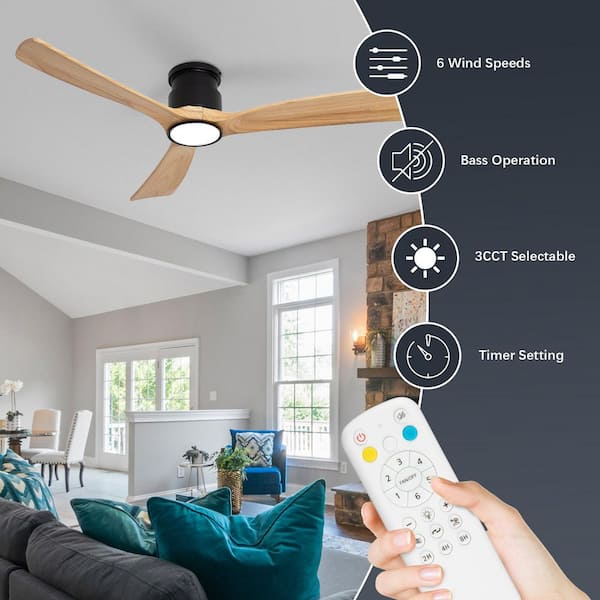Raccroc 52in. Dimmable LED Indoor/Outdoor Wood Smart Ceiling Fan with Light and 6-Speed Remote