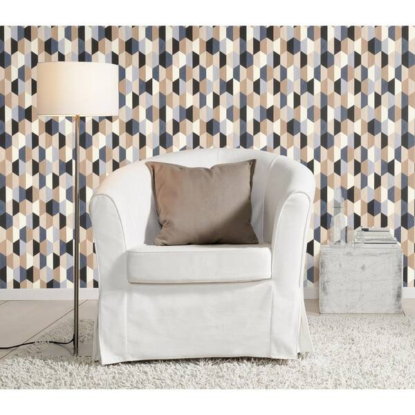 Anthony Blue Wooden Hexagon Wallpaper Sample