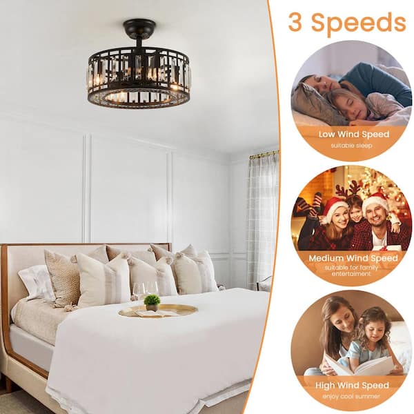 Customer Reviews for ANTOINE 18 in. Indoor Modern Black Crystal Ceiling Fan with Light Small Caged Bedroom Ceiling Fan with Remote