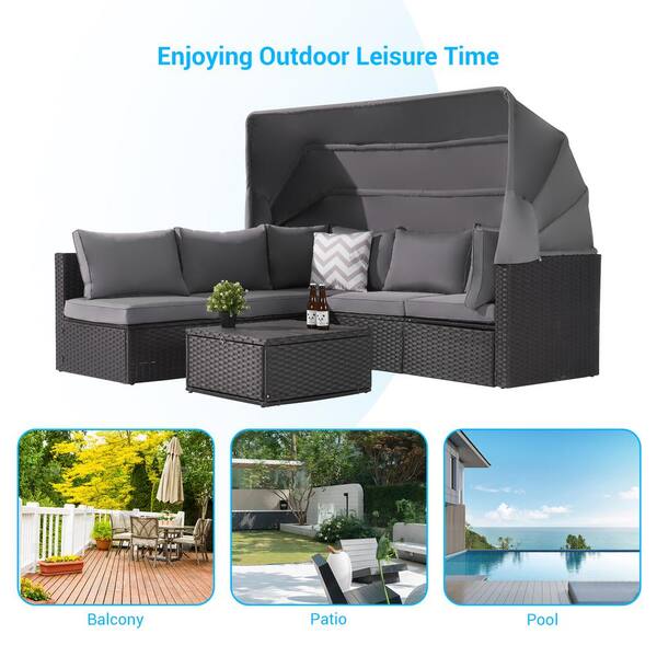 Customer Reviews for BFB 4-Piece Patio Wicker Daybed Set with Retractable Canopy and Versatile Coffee Table