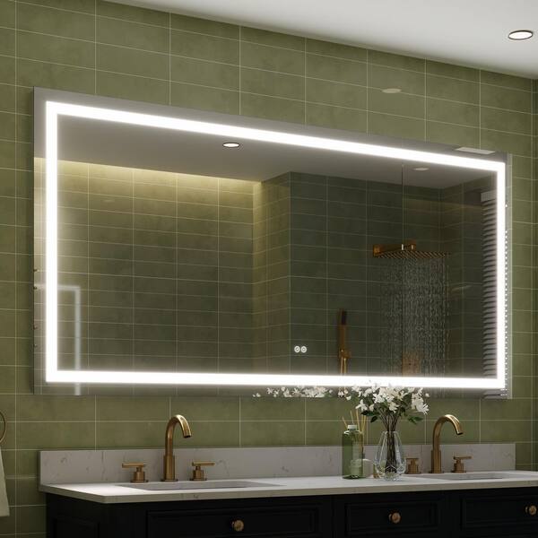 Customer Reviews for FORCLOVER Anti-Fog LED Light 72 in. W x 36 in. H Large Rectangular Frameless Wall Mounted Bathroom Vanity Mirror (Without Plug)