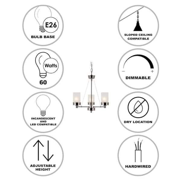 - Uses (3) 60W E26 incandescent or LED light bulbs, not included