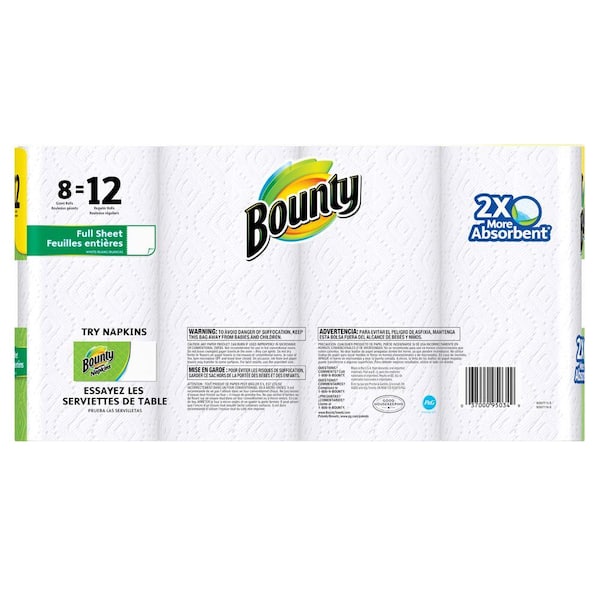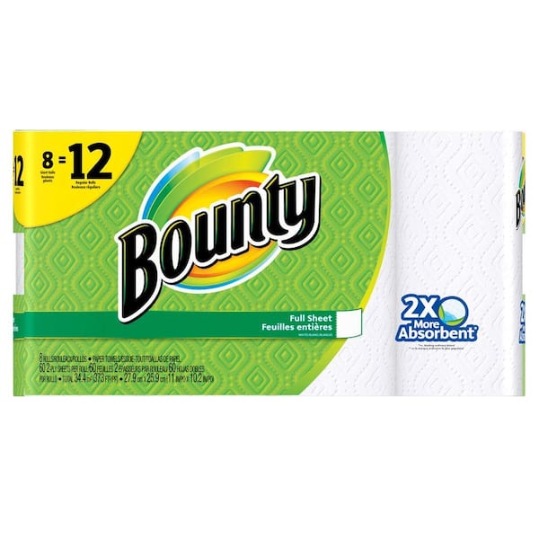 - 8 Bounty Giant Rolls = 12 regular rolls (Full Sheets)