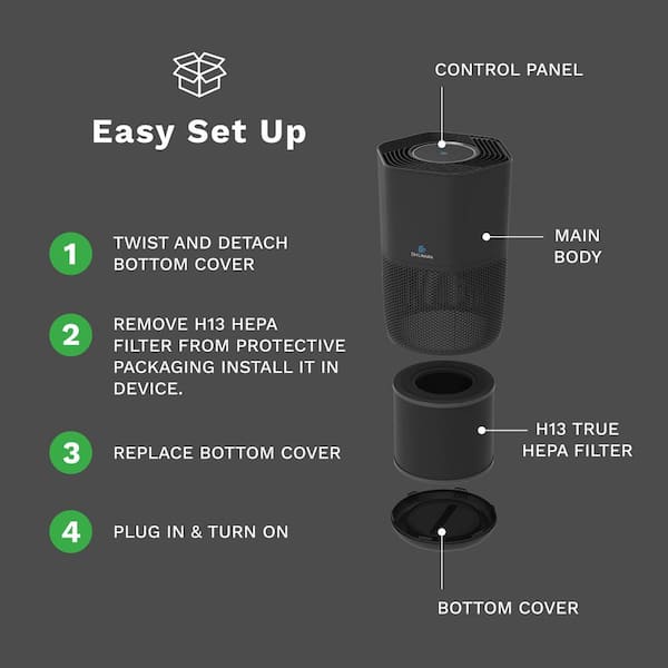 - H13 true HEPA filter removes 99.97% of pollutants and allergens