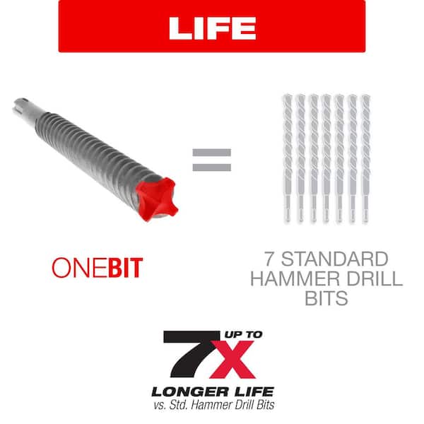 - Up to 7X longer life versus standard 2-cutter hammer drill bits