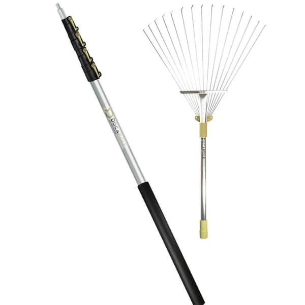 6 ft. - 24 ft. Extension Pole + Roof Rake Telescopic Adjustable Roof Rake for Cleaning Leaves, Sticks & Debris from Roof