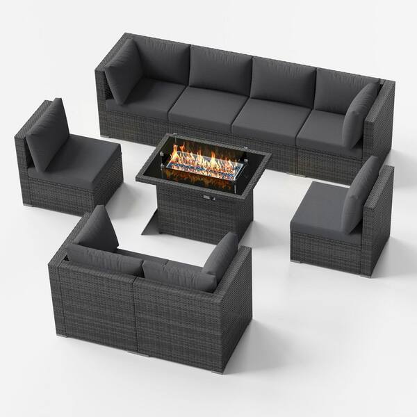 Customer Reviews for FINCATI Gray 9 Piece Wicker Patio Conversation Set Deep Sectional Seating Set with Charcoal Cushions and Fire Pit Table