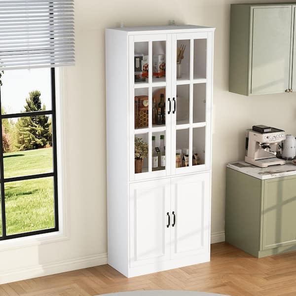 Customer Reviews for FUFU&GAGA White Wooden MDF ( 31.5 in. W) Sideboard, Accent Storage Cabinet, Food Pantry with 4 Tempered Glass Doors and 5 Shelves