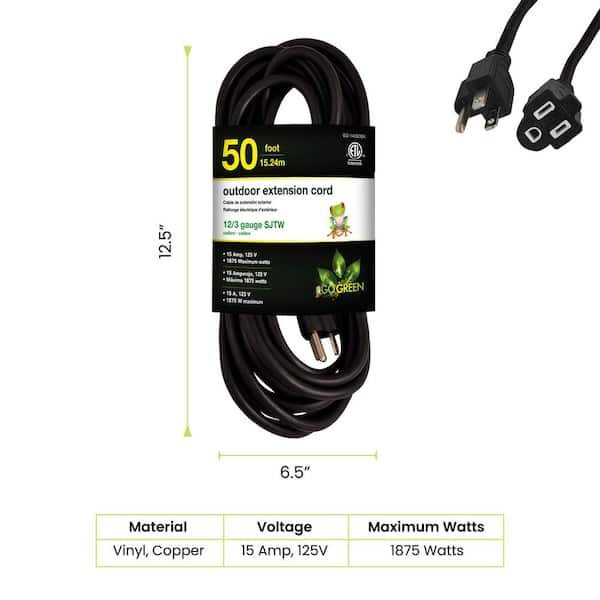 Customer Reviews for GoGreen Power 12/3 50 ft. Outdoor Extension Cord - Contractor Grade - Ideal for Heavy Duty Tools - GG-14050BK - Black