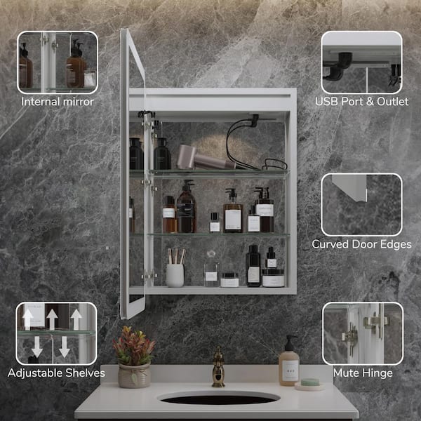 Customer Reviews for HBEZON Artemis 24 in. W x 30 in. H Small Rectangular Aluminum Rounded Edge Dimmable Medicine Cabinet with Mirror, Left Hinge