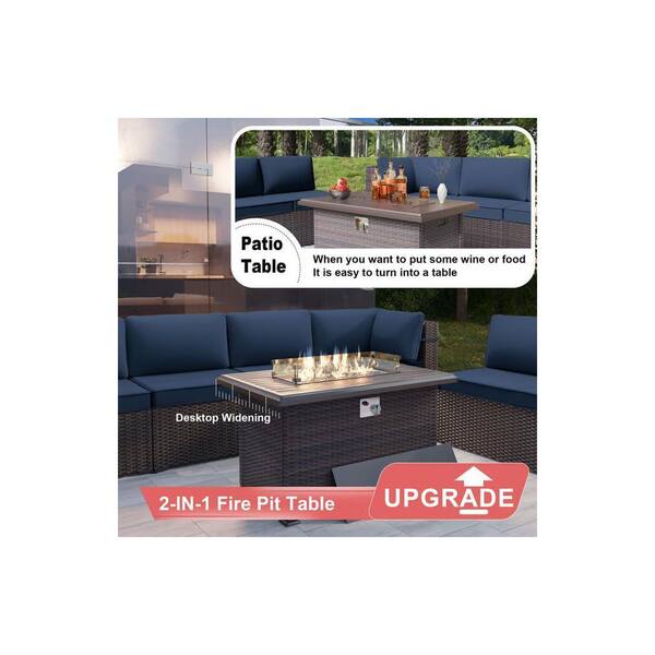 Customer Reviews for Halmuz 15-Piece Wicker Patio Conversation Set with 55000 BTU Gas Fire Pit Table and Glass Coffee Table and Cushions Navy Blue