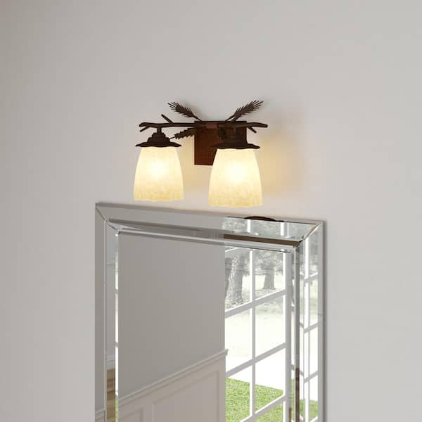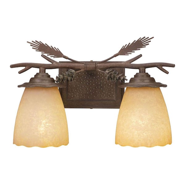 Customer Reviews for Hampton Bay Lodge 2-Light Weathered Spruce Vanity Light with Sunset Glass Shades