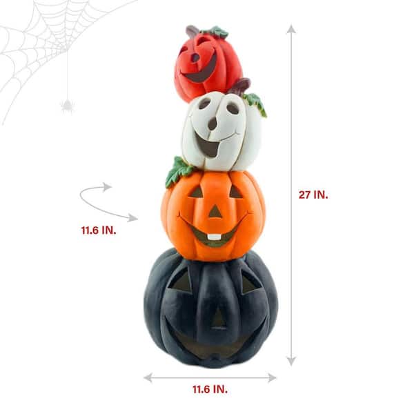 - 27 in. stacked pumpkin decoration adds Halloween fun