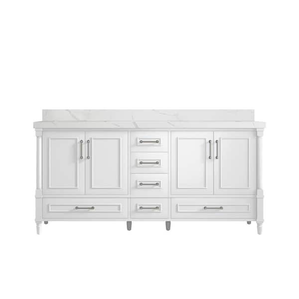 Customer Reviews for Willow Collections Hudson 72 in. W x 22 in. D x 36 in. H Double Sink Bath Vanity in White with 2 in. Calacatta Quartz Top