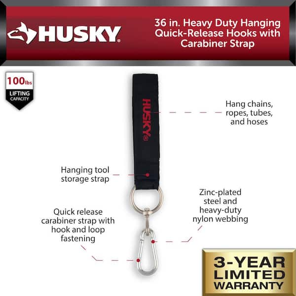 Customer Reviews for Husky 36 in. Heavy-Duty Hanging Carabiner Strap Zinc-Plated Steel with Quick-Release Hook and Loop Fastening in Black (2-Pack)