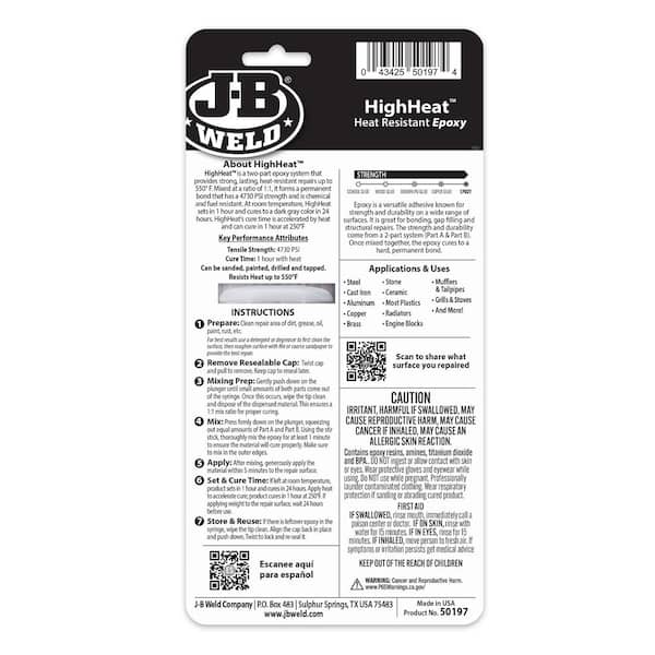 Customer Reviews for J-B Weld HighHeat 25 ml (0.85 fl. oz.) Temperature Resistant Epoxy Syringe