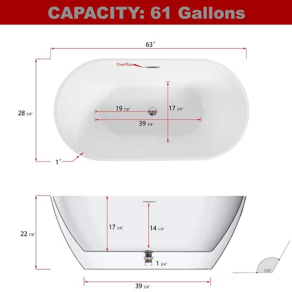 Customer Reviews for JimsMaison 63 in. Acrylic Freestanding Flatbottom Soaking Bathtub in Glossy White with Drain