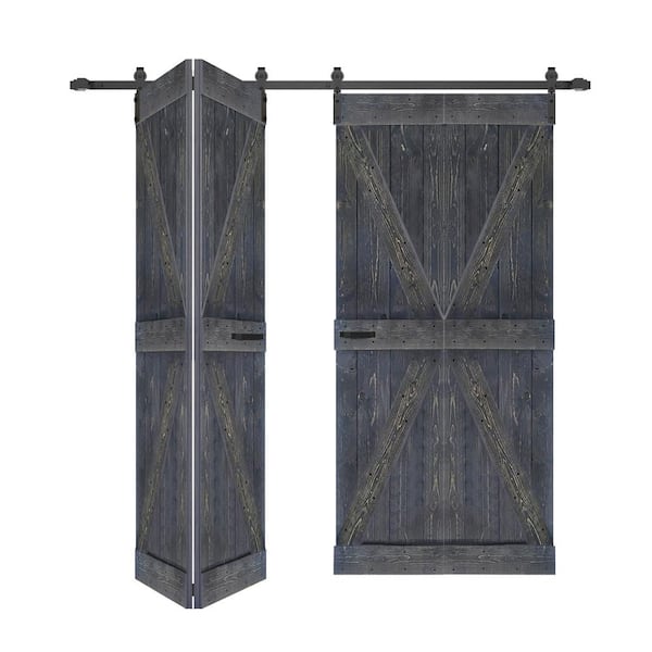K Style 48 in. x 84 in. (12 in. x 84 in. x 4-Panels) Carbon Gray Solid Wood Bi-Fold Door W/ Hardware Kit-Assembly Needed