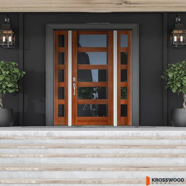 Customer Reviews for Krosswood Doors 70 in. x 96 in. Modern Hemlock Right-Hand/Inswing Clear Glass Red Chestnut Stain Wood Prehung Front Door with DSL