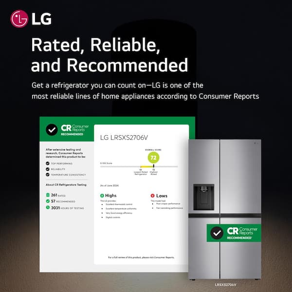 Customer Reviews for LG 27 cu. ft. Side by Side Refrigerator w/ Pocket Handles,Door Cooling, External Ice and Water Dispenser in Platinum Silver