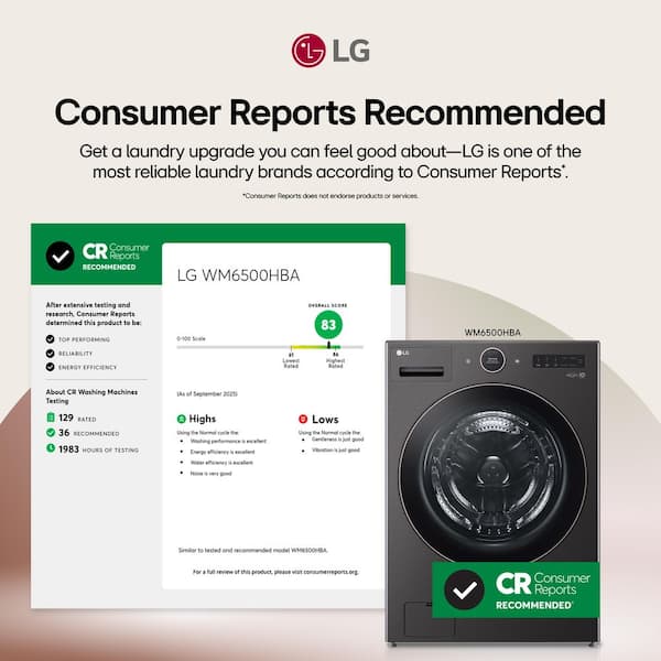 Customer Reviews for LG 5.0 cu. ft. Stackable Smart Front Load Washer in Black Steel with AI Digital Dial, Steam and TurboWash360