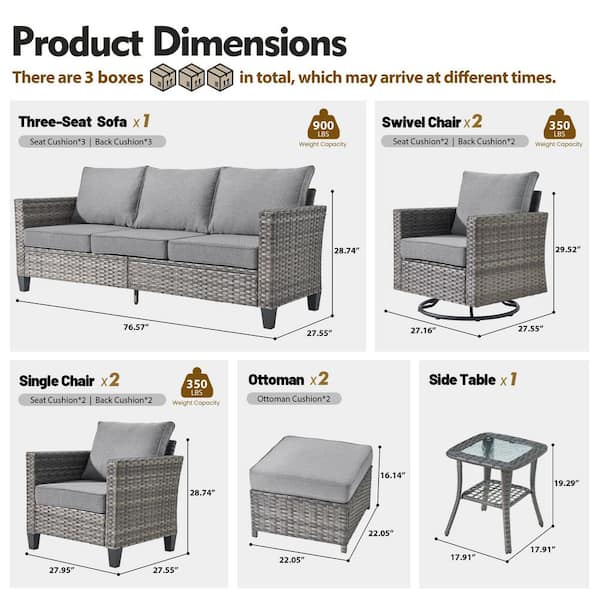 Customer Reviews for XIZZI Megon Holly Gray 8-Piece Wicker Patio Conversation Seating Sofa Set with Dark Gray Cushions and Swivel Rocking Chairs