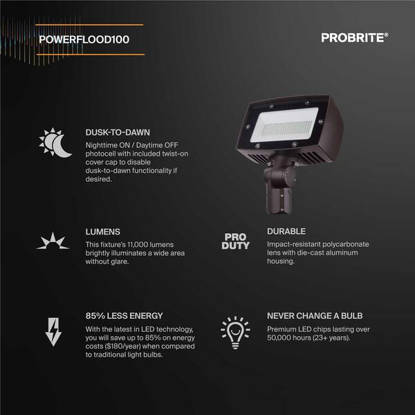Customer Reviews for PROBRITE 750-Watt Equivalent Integrated Outdoor LED Flood Light, 11000 Lumens, Dusk to Dawn Outdoor Security Light