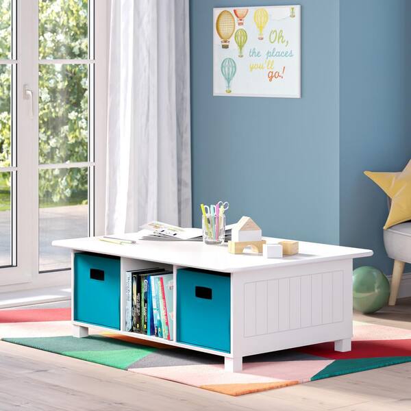 Customer Reviews for RiverRidge Home White Rectangular Kids Desk, Activity and Play Table with 6-Storage Cubbies with 2-Turquoise Fabric Bins