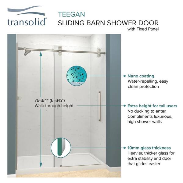Customer Reviews for Transolid Teegan 59 in. W x 80 in. H Sliding Semi Frameless Shower Door with Fixed Panel in Brushed Nickel with Clear Glass