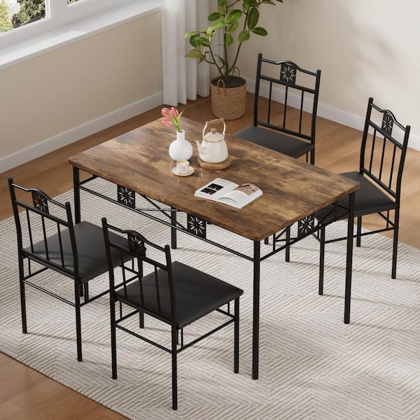 Customer Reviews for VECELO 5-Piece Dining Table Set Wooden Kitchen Table 1 Table 4 Chairs Metal Legs, Rectangular Dining Table Sets,42.1"L, Brown