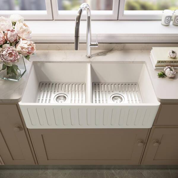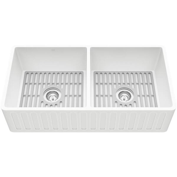 Customer Reviews for VIGO Matte Stone 36" Double Bowl Farmhouse Apron Front Undermount Kitchen Sink with Accessories