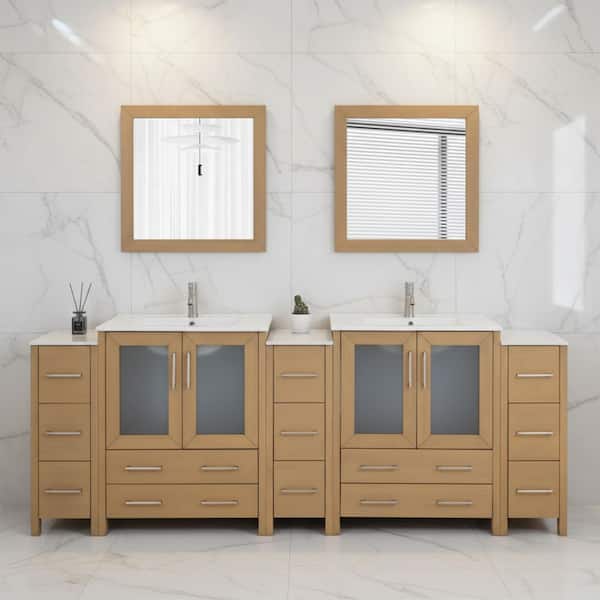 Customer Reviews for Vanity Art 96 in. W x 18 in. D x 36 in. H Natural Oak Bath Vanity with White Ceramic Top and Mirror